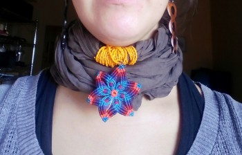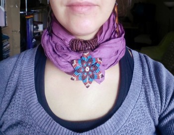 Pañuelos con detalles de macrame 5 euros. Puedes elegir colores (rojo, morado, marrón, negro, turquesa, rosa, verde) y macrame, pueden ser flores, hojas, rectangulos, dinos que te gusta y creamos el tuyo ;)